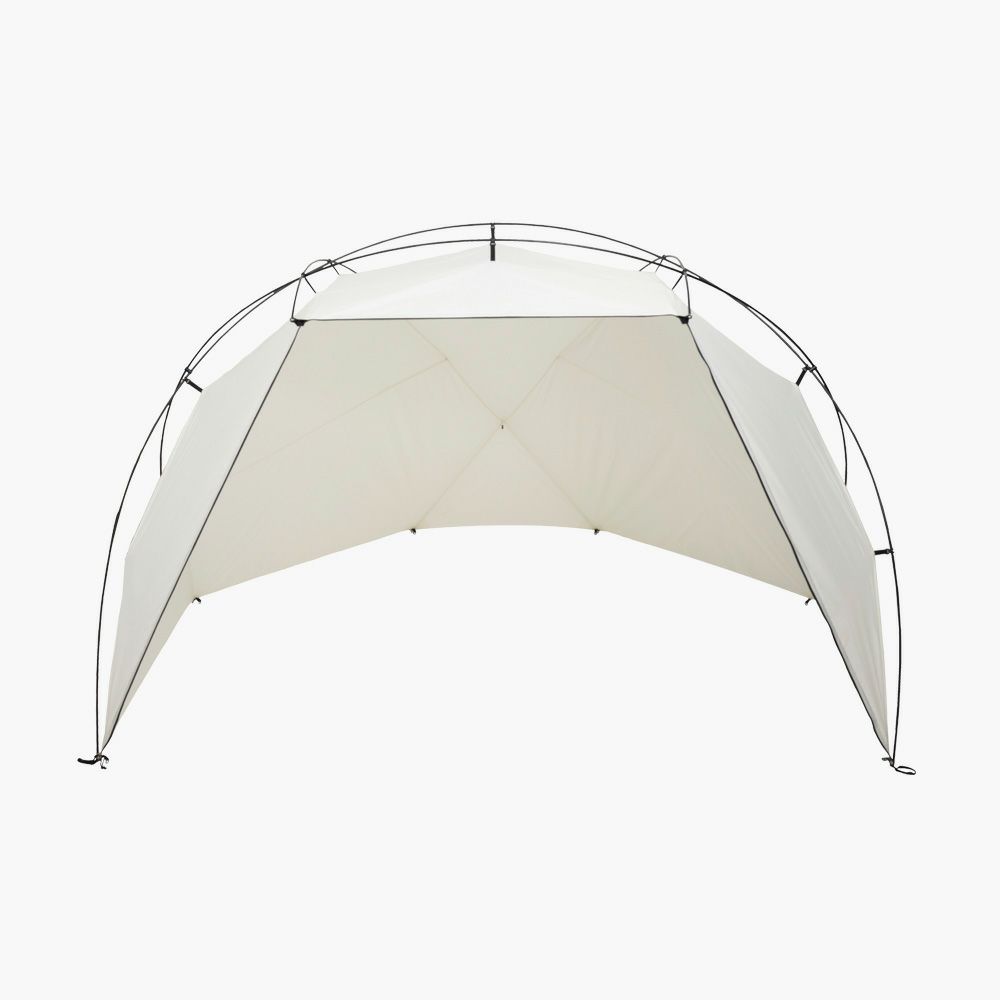 2つのポール(2本連結式)で構成され、簡単&素早く組み立てが可能。自立型シェルターなので、風の弱いところではペグダウンがいらなく、周りの状況によって柔軟に対応できます。