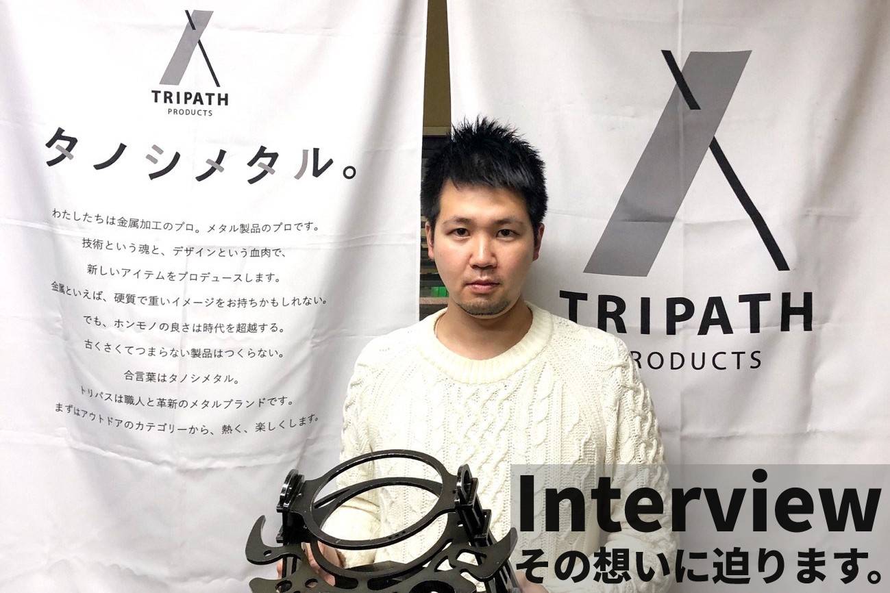 わたしたちは金属加工のプロ。メタル製品のプロです。 技術という魂と、デザインという血肉で、 新しいアイテムをプロデュースします。 金属といえば、硬質で重いイメージをお持ちかもしれない。 でも、ホンモノの良さは時代を超越する。 古くさくてつまらない製品はつくらない。 合言葉はタノシメタル。 トリパスは職人と革新のメタルブランドです。 まずはアウトドアのカテゴリーから、熱く、楽しくします。
