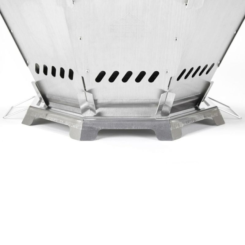 つぼみ(BUD)をイメージした八角形の 組み立て式二次燃焼焚火台 〈セット内容〉 ・凸型パーツ × 4 ・凹型パーツ × 4 ・ロストル ・取っ手付きベース ・収納バッグ Mt.SUMI/マウントスミ Mt.SUMIは京都宇治炭山という山間部にあるアウトドアメーカーです。 “炭山”という地名は昔、山の木を切り出し、その木で炭を作っていたことに由来しています。 人々は自然の恵みを生かしながら暮らしていました。 私たちも事業の傍ら、地域の山を守るべく、山の整備活動を行っています。 間伐した材は薪になり、山間部の寒い冬の暖かな燃料となります。 作業が終わると仲間と焚き火をし、火を囲むと皆が自然と語り合い、笑顔になります。 人と火は古来から密接に関係し、灯り、温もり、暖かな料理を与えてくれるとともに危険な動物たちからも身を守ってくれました。 ゆえに人は火から安らぎを感じるのではないでしょうか。 私たちは火とともに過ごすアウトドアを提案していきたいと思います。 火を囲み、自然に感謝し、人がいつまでも人らしくいられることを願って。