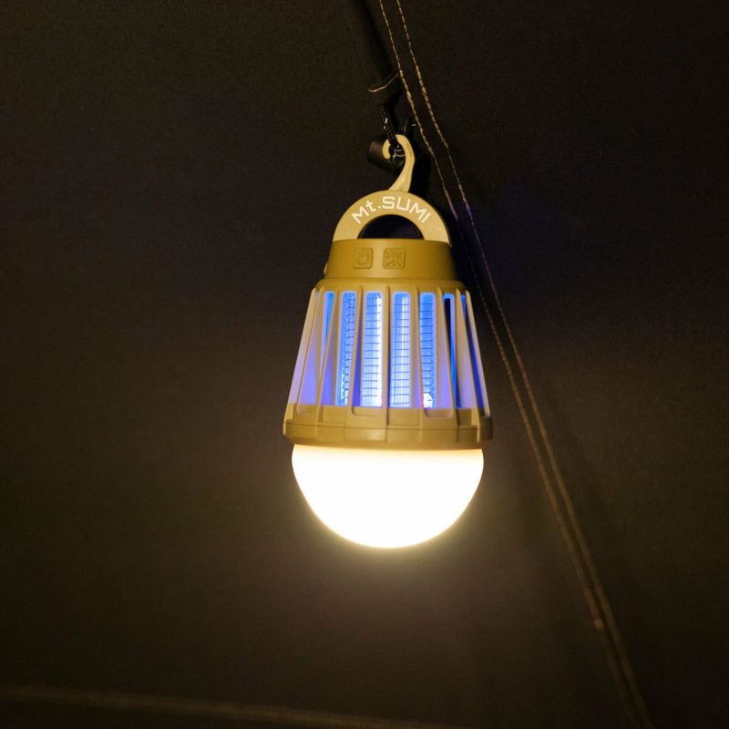 電球色+白色切替式 電撃殺虫器付のLEDランタン POINT.1 充電タイプで、使う場所を選ばないLEDランタン USBで約3時間で充電完了。 「置く」「吊るす」「持つ」の3WAYで使用可能です。 防水設計なので、大雨の中でも安心。 ランプシェード部分は柔らかい素材で出来ているので、落としたりぶつけたりしても安全です。 POINT.2 ボタン一つで6段階の調光&調色 大人気の電球色に、明るい白色照明をプラスして計6段階の調光&調色を実現しました。 ボタンひとつで切り替えが可能なのでとても簡単です。 POINT.3 人気の電撃殺虫器付 虫が好む紫外線で誘導して、電撃殺虫器で一撃。無音なので、枕元に置いてもお使いいただけます。 水洗いもOKですのでメンテナンスも簡単。お部屋でもアウトドアシーンでも大活躍です。 ※紫外線ライトのみで約30時間使用可能。 操作方法 【照明】 ランタン用スイッチを押すと、低モード、中モード、高モード、オフと切り替えられます。ランタン用スイッチを5秒長押しで電球色を切り替えます。 【電撃殺虫】 電撃殺虫のスイッチを押すとLED紫外線をオンまたはオフにできます。 ※照明と電撃殺虫は同時に利用することが可能です。 【充電方法】 USBケーブルでACアダプターやPCなどに接続すると充電が開始します。その時、赤色の指示ライトが点灯します。完全に充電されると、指示ライトが緑色になります。