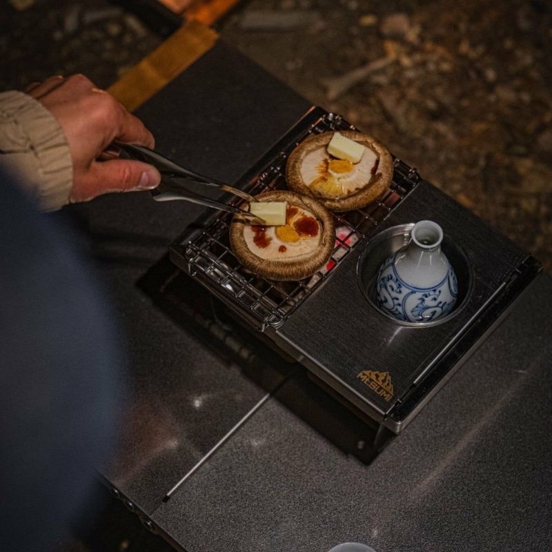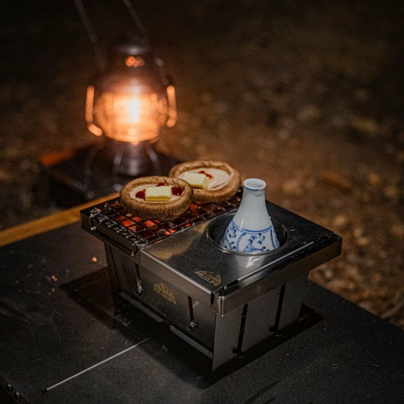 熱燗と焼き物が同時に堪能できる 野燗炉キット パーフェクトグリルミニ / ミニSEが野燗炉 (のかんろ) に ※野燗炉 (のかんろ) とは… 平安時代から江戸時代にかけて生まれた、熱燗と調理を同時に楽しむことができる日本伝統のアウトドア用調理器具です。 片側に炭を入れて火を起こし、もう片方のカップで湯を沸かして熱燗を作ることができます。さらに、アミの上では酒の肴を焼くことも可能です。一つの器具で、熱燗とおつまみの調理を同時に楽しめる便利な設計です。 “酒と肴だけでなく、さまざまな楽しみ方が可能 熱燗や酒の肴だけでなく、みたらし団子やチョコレートフォンデュ、湯豆腐など、さまざまな料理も楽しむことができます。 アイデア次第で使い方が無限に広がります。