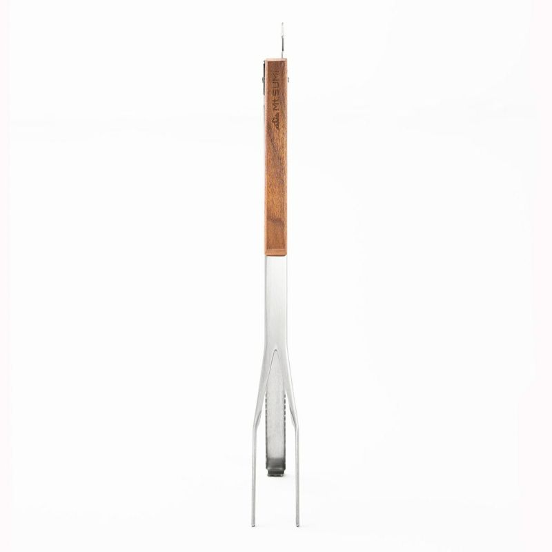 先端分岐構造で薪や炭を しっかり掴む自立式の火バサミ POINT.1 安定して掴めるこだわりの形状 片側の先端が2点に分岐していることで、薪や炭などを3点で掴むことが可能に。 掴んだものがブレにくくなり、安全かつ安定したハンドリングを実現しました。 POINT.2 便利な自立式 閉じた状態でも、開いた状態でも立つ自立式。 閉じた状態をキープするロック機能も搭載。 フック付きで、薪ストーブやグリルに引っ掛けられるのも嬉しいポイント。 POINT.3 充実の機能性 先端のかぎ爪は火かき機能だけでなく、ダッチオーブンなどの蓋を引っ掛けて使用することも可能。 先端部の一部にMt.SUMIのロゴが小さくあしらわれています。 Mt.SUMI/マウントスミ Mt.SUMIは京都宇治炭山という山間部にあるアウトドアメーカーです。 “炭山”という地名は昔、山の木を切り出し、その木で炭を作っていたことに由来しています。 人々は自然の恵みを生かしながら暮らしていました。 私たちも事業の傍ら、地域の山を守るべく、山の整備活動を行っています。 間伐した材は薪になり、山間部の寒い冬の暖かな燃料となります。 作業が終わると仲間と焚き火をし、火を囲むと皆が自然と語り合い、笑顔になります。 人と火は古来から密接に関係し、灯り、温もり、暖かな料理を与えてくれるとともに危険な動物たちからも身を守ってくれました。 ゆえに人は火から安らぎを感じるのではないでしょうか。 私たちは火とともに過ごすアウトドアを提案していきたいと思います。 火を囲み、自然に感謝し、人がいつまでも人らしくいられることを願って。
