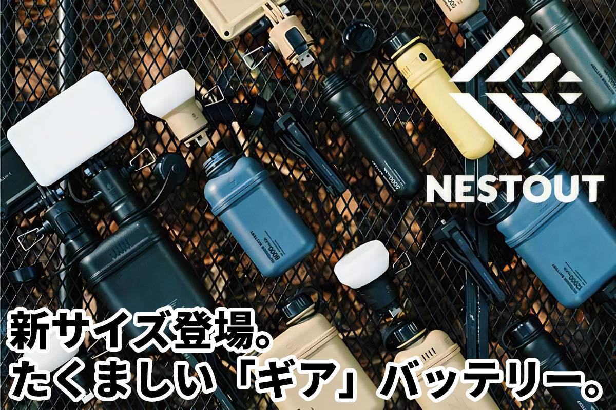 FLASH-1は、色味を調光出来る強い光で食事の準備やテント設営などのシーンで活躍します。 バッテリーに接続パーツを取り付けることでしっかりとギアを固定する事ができます。 またギアの付け替えは簡単に行うことができます。 NESTOUT アウトドアバッテリーの底部に取り付けられるミニ三脚が付属しています。※ネジはカメラネジ規格の1/4インチネジです。 約 135 g 定格人力電圧: 5V 定格人力電流: 2.0A 外形寸法: ライト:幅約100mm×奥行約35mm×高さ約119mm/ミニ三脚(開脚時):幅約145mm×奥行約130mm×高さ約45mm/ミニ三脚(閉脚時):幅約31mm×奥行約29mm×高さ約90mm コネクタ形状(電源入力側) : USB-Aコネクター(筐体一体型) 定格人格電力: 12W 発光方式: 広域発光(点灯) L E D 灯数: 20個+20個 調光:無階調整 (昼光色、電球色、昼白色) 明るさ( 全光束) : 最大約750lm ※積分球による全光束値 明るさ( 理論値) : 最大約1000lm 色温度: 2800K~6000K 演色性: Ra80以上 設計寿命: 発光時間60000h ※製品の寿命を保証するものではありません 動作温度: 0~40℃ 右がFLASH-1。 NESTOUTのモバイルバッテリーと連結して使用できる「FLASH-1」。最大1000lmで照らすことが可能。色味を調光できる強い光で、夜の食事の準備や設営などのシーンにも最適。 NESTOUTの5000mAhのバッテリーで、最長25時間継続点灯可能です。最大光量でも1.5時間の継続点灯。 NESTOUTのモバイルバッテリーの底には、ランタンパーツ付属のミニ三脚を取り付ける事が出来ます。中央部にはカラビナなどを通せる輪が付いていますので、テントやタープの天井部に吊り下げて使用することもできます。 NESTOUT 5000mAhはこちら