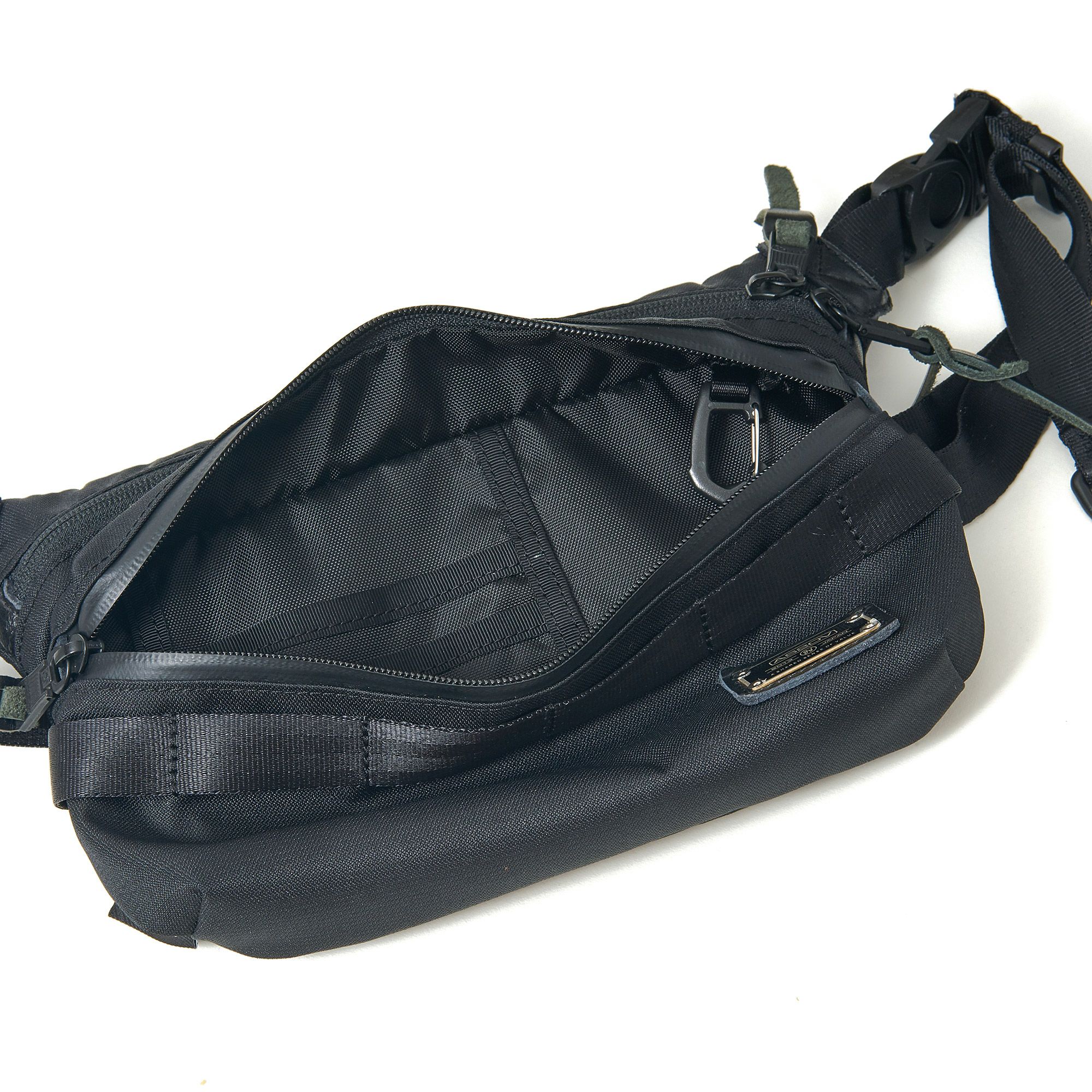 小さいながらもレザーパーツや、止水ジップなどDOBBYシリーズのディテールをぎゅっと落とし込んだDOBBYシリーズのファニーパックは、大人がつけてもかっこいいミニサコッシュ的なものを作ろう、とデザインされています。