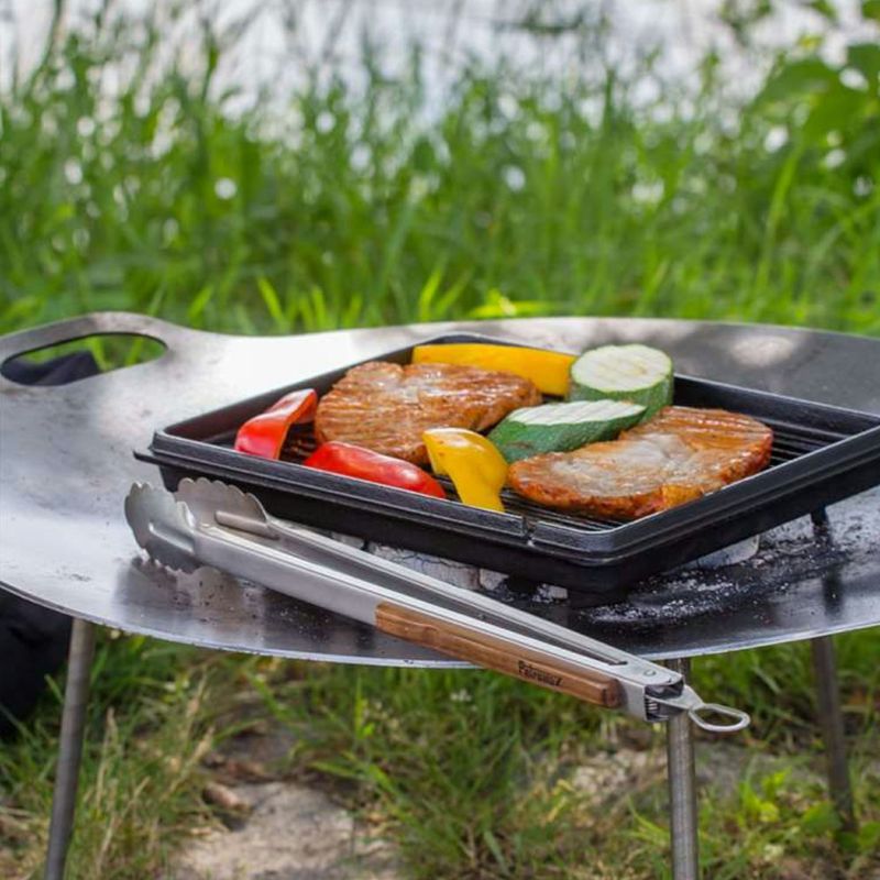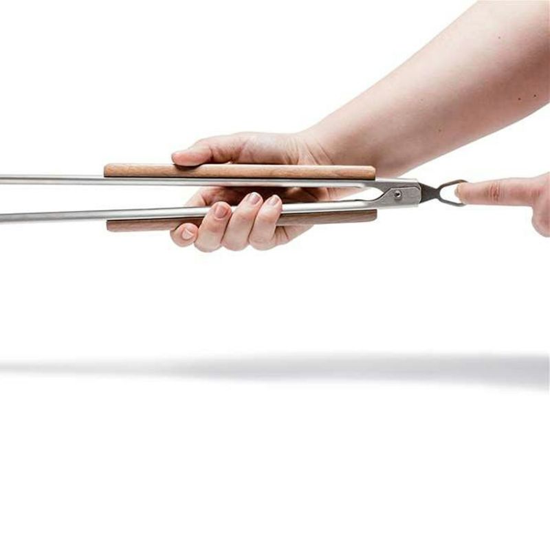 スチール製の本体の先端は波型形状となっており、食材や火のついた炭を掴みやすく大変便利です。 手にしっくりなじむ木製ハンドルを採用。