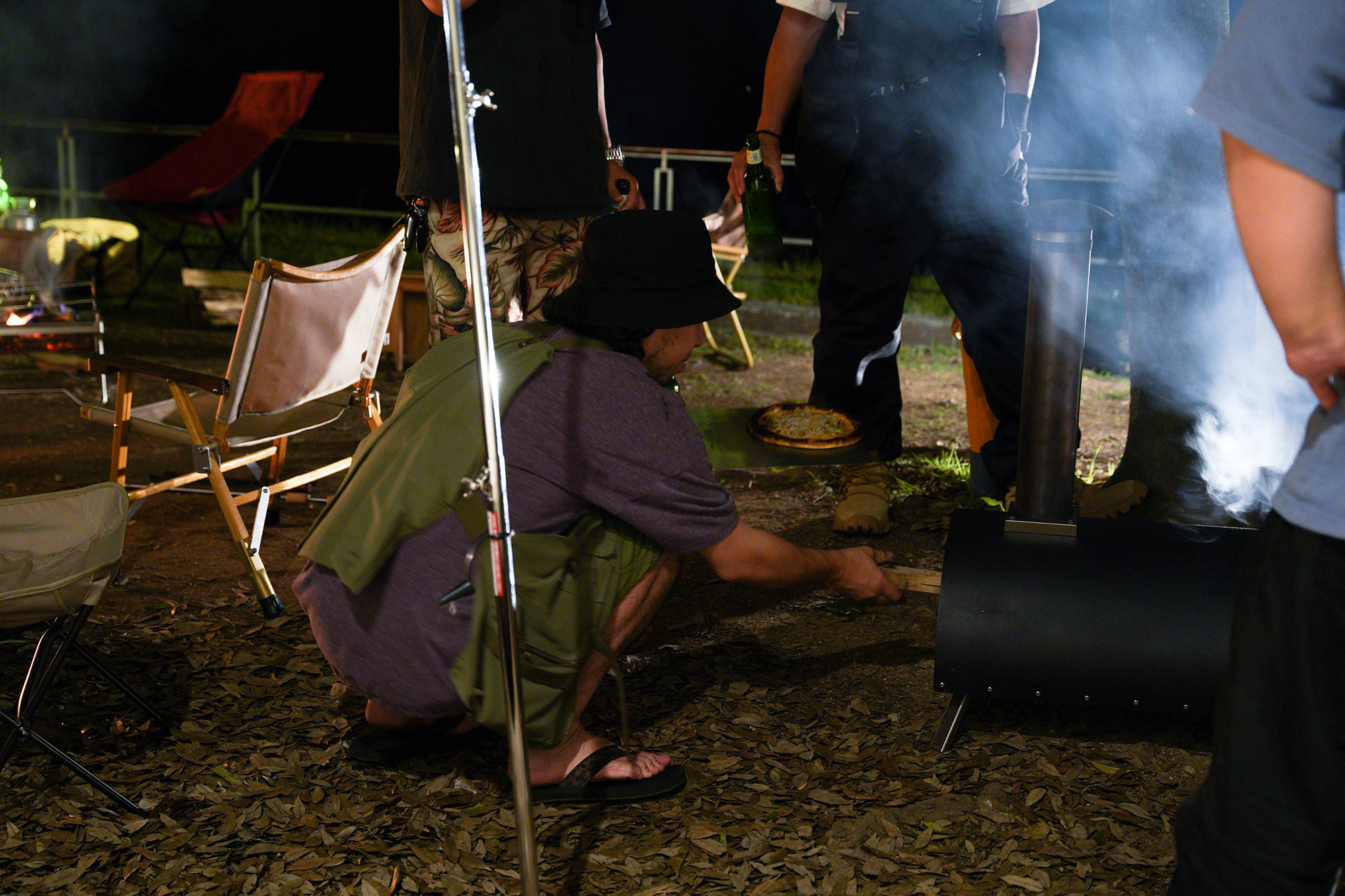 今回のお食事はUNBY BOWL STANDでも用意していましたが、みんなで楽しんでごはんを作れたらとも思っていたので、FIRESIDEのピザ窯「KABUTO」を使用してピザ焼きも実施、参加者全員でおいしくいただきました。