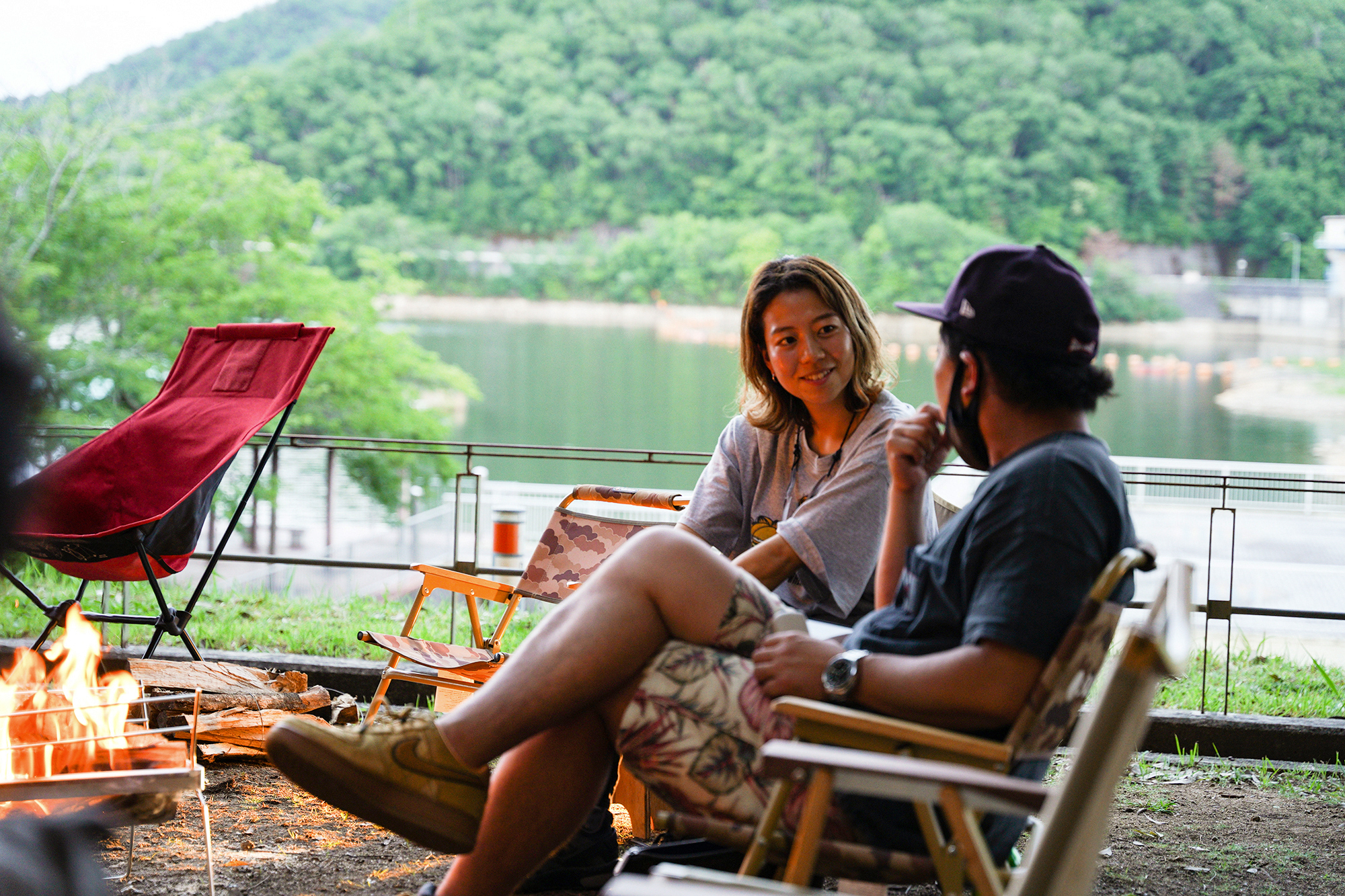 持ち込んでいただいた焚き火台とスタッフの私物の焚き火台、合計5つを囲んでぐるっと座り、ニックネームとキャンプ歴などをお話しいただいたのですが、自己紹介が終わればもう自然と気になるギアへ集まったり横の席同士で和気あいあいと話が弾み始めました。これは焚き火の力ってやつでしょうか。