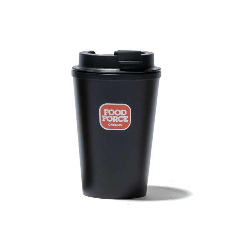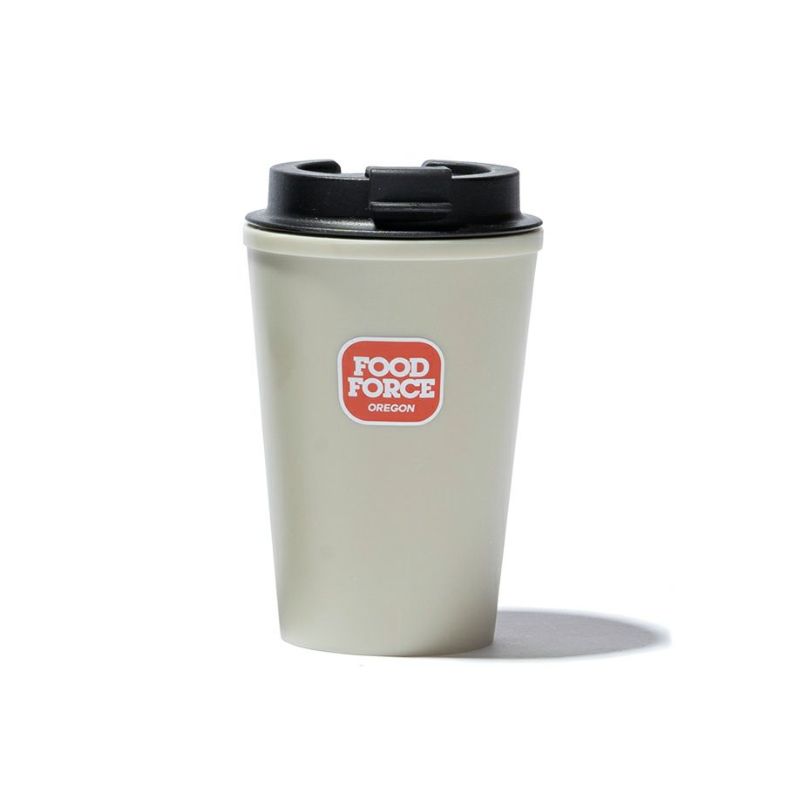 アメリカ、オレゴン州にて5店舗展開するスーパーマーケット「FOOD FORCE OREGON」のオフィシャルマグカップ。 有機栽培にて生産された新鮮な食材を低価格で提供し地産地消に取り組むローカルで人気を集めるショップをイメージしています。 本体は、ダブルウォール(2層構造)のため、熱いものを入れても快適に持つことができます。冷たい物を入れても、結露がしにくい構造になっています。 また蓋の密閉性が優れているため、本体を倒しても、中身がこぼれにくい事も特徴です。