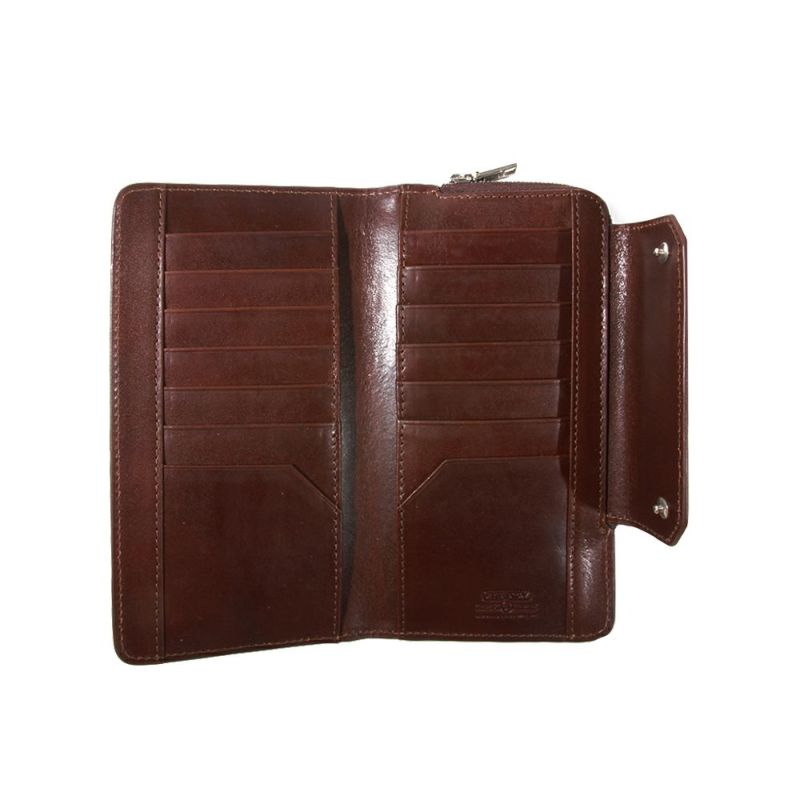 ケース・カバー無しのiPhone13/13proが入る大きさです。 ケース・カバー装着状態のiPhoneにつきましては、形状により収納が不可な場合もございます。 本体レザーは、イタリア中部トスカーナ州にあるサンタ・クローチェにある創業40年の歴史のあるCONCERIA YANKEE SRL社のベジタブルタンニンレザーを使用し、フランス産原皮を植物タンニンで鞣し、染料で染めて後にオイルを含ませ、仕上げに表面をアイロン掛けし上品な艶感を表現しております。 背面側L字ZIPポケットには携帯を入れれる様になっており、内装には傷がつきにくいよう起毛素材を使用しており、ファスナーにはYKKのEXELAZIPを使用しております。 シンプルなデザインに実用的な機能性を踏まえたシリーズになります。