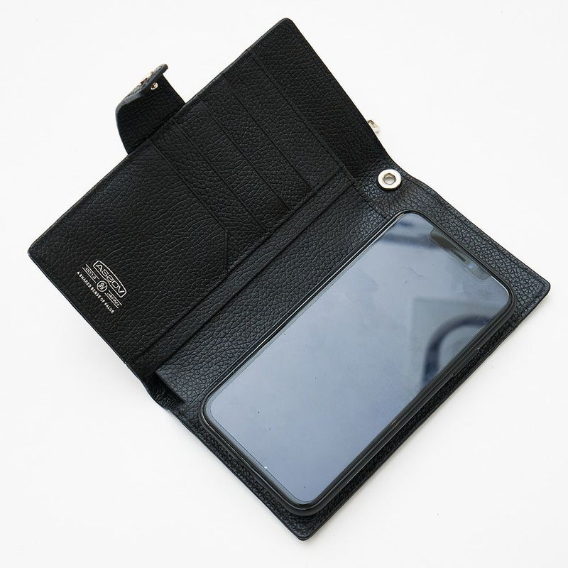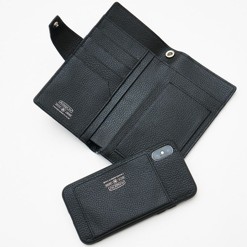 ケース・カバー無しのiPhoneX/XSが入る大きさです。 本体レザーは、国内原皮を使用しクロムで鞣した後にクロムを抜き、再度タンニンで鞣しております。 下地を染色後オイルを塗り込み、オーバーナイトさせてしっかりとオイルが革に染み込む様加工し、その後さらに染料を入れ色の深みを付け表面のエンボス加工の際には圧力・温度 を調整しより自然のシュリンク感が表現されている仕上がりになっております。オイルを含んでおり、染料仕上げの為使い込む程に経年変化を楽しんで頂けます。