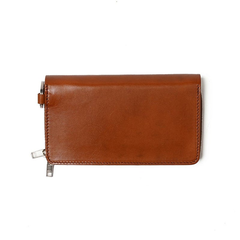 本体レザーには、原皮から時間をかけ、タンニンとなめし剤に漬け込みなめした事で、革の芯までタンニンを浸透させています。 製造工程の段階で環境汚染の原因となる薬品や有害物質を使用せず植物タンニンオイルを主としております。 職人の手作業によるオイルの塗り込みやグレージング、アイロンかけを重ね深みのある風合いに仕上げております。 手作業により、自然のムラ感のある表情が特徴となっております。