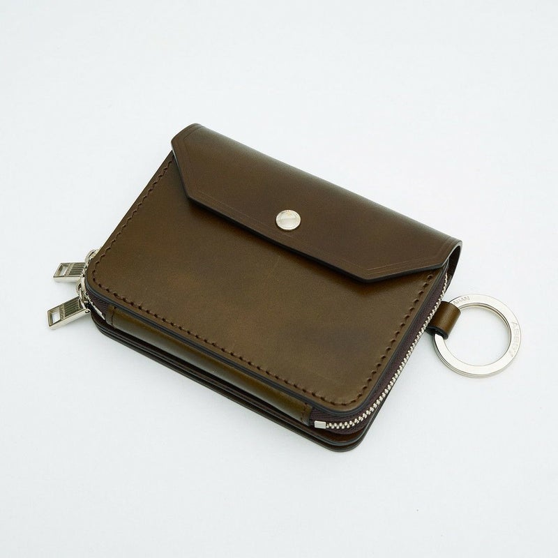 本体レザーには、原皮から時間をかけ、タンニンとなめし剤に漬け込みなめした事で、革の芯までタンニンを浸透させています。 製造工程の段階で環境汚染の原因となる薬品や有害物質を使用せず植物タンニンオイルを主としております。 職人の手作業によるオイルの塗り込みやグレージング、アイロンかけを重ね深みのある風合いに仕上げております。 手作業により、自然のムラ感のある表情が特徴となっております。