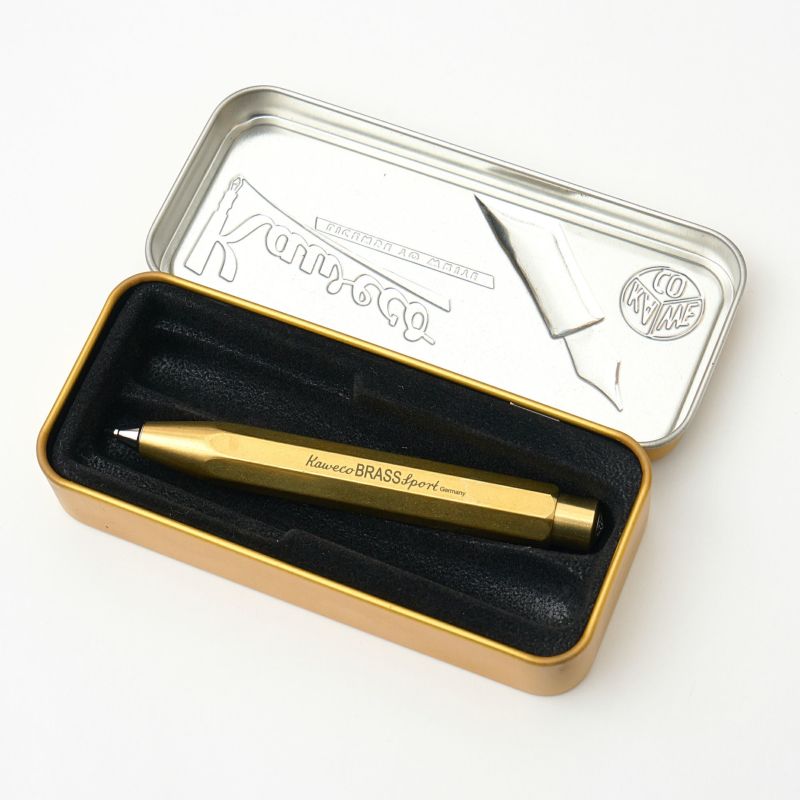 経年変化を楽しめる真鍮製のブラススポーツシャープペンシルです。 ※専用リフィル無し Kawecoは、ハインリッヒ・コッホ(Koch)と、ルドルフ・ウェバー(Weber)により、1883年にドイツのハイデルベルグで創業され、二人の名前からKawecoと名付けられました。 1909年に画期的な技術を取り入れた、安全繰り出し式のセーフティ万年筆を発売したことでも知られています。 また、1930年代に発売された「Kaweco Sport」は、1972年のミュンヘン・オリンピック開催の際に公式ペンとしても認定されました。 「Kaweco Sport」はクラシックなイメージの中に、機能性、携帯性を兼ね備えた製品となっております。 1976年にKawecoは一旦その幕を閉じましたが、1995年にドイツ・ニュールンベルグのグットバレット社により復刻されました。 その後、当時の面影を残した数多くのペンが復刻されています。