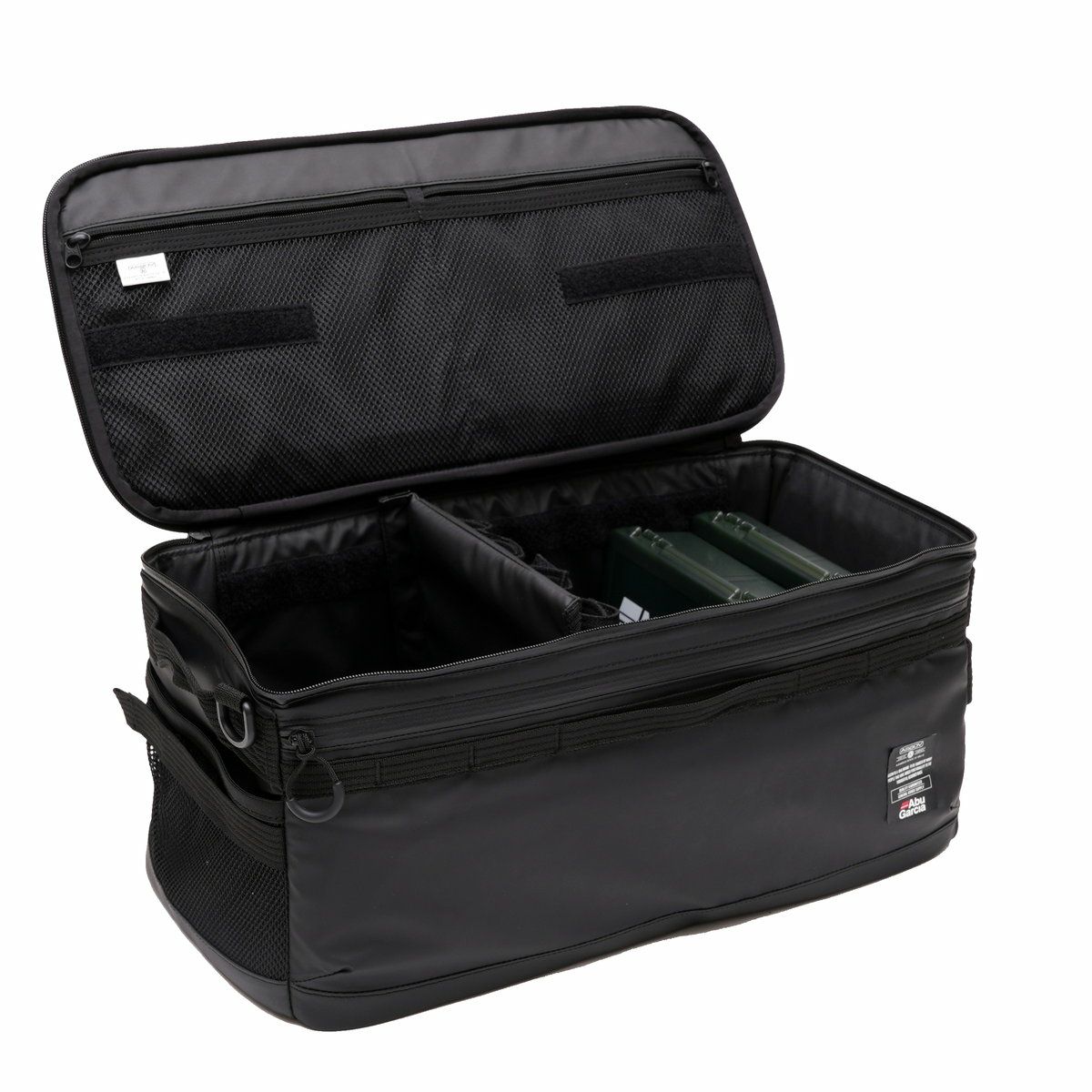 内装全面にウレタンクッションがボンディングされ、マジックテープで取り外せる仕切りを使って調理器具やウォータージャグを詰め込めます。外装には剥離耐性の高いポリカーボネートコーティングを施したナイロン生地を使用しているので、雨に濡らしたくない電子機器の持ち運びにも便利です。