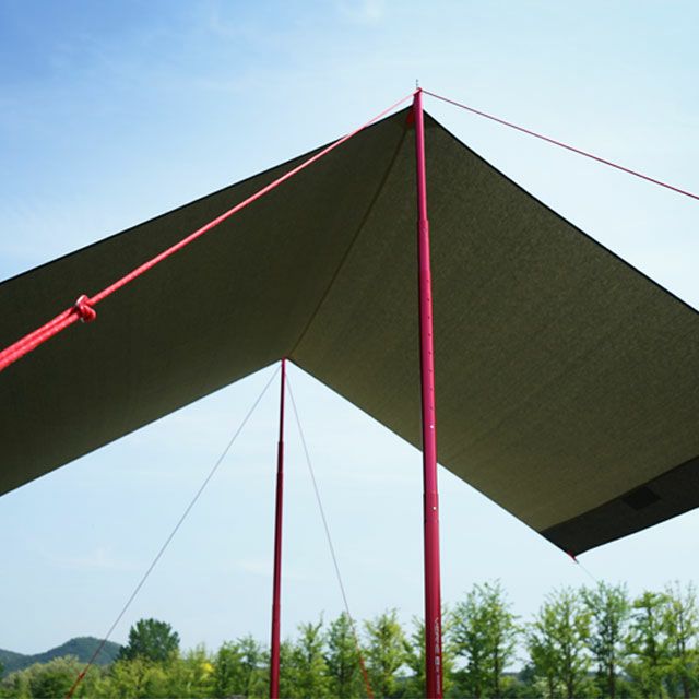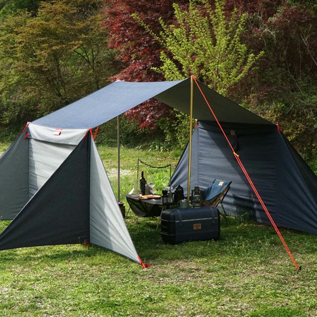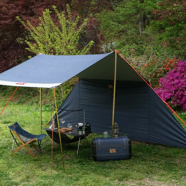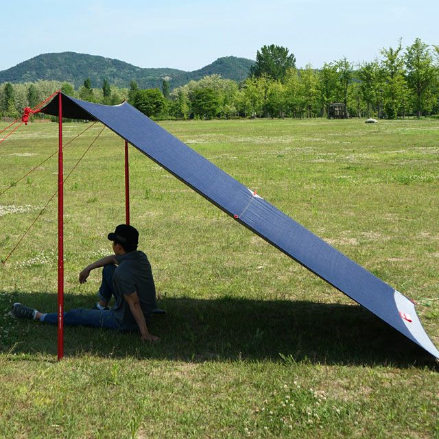 キャンプギアとしては珍しいデニム生地を使用したタープ。コットンのインディゴカラーなので、遮光性はかなり期待できるでしょう。また、デニムならではの、使用するほどに経年変化をしてオリジナルの色合いになる楽しみもこのタープの魅力の1つです。