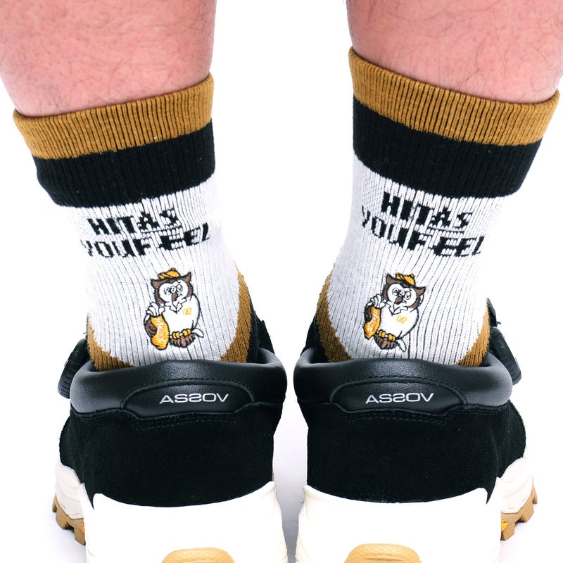 ブランドオリジナルキャラクター「OWLUCK(オウラック)」をあしらったカジュアルソックス。 遊び心のあるデザインがスタイリングのアクセントになり、ゴルフシーンはもちろん日常使いにも映える一足です。 抗菌・防臭機能を備えた糸を使用しており、長時間の着用でも快適さをキープ。足に程よくフィットする設計で、ズレにくく安定した履き心地を実現しています。 カラーごとに印象が変わる配色デザインで、コーディネートに合わせて選べるのも魅力。機能性とデザイン性を兼ね備えたアイテムです。 OWLUCK(オウラック|AS2OVオリジナルキャラクター “運を引き寄せるフクロウ” Owluccは「Owl(フクロウ)」×「Luck(運)」から生まれたキャラクター。知恵と幸運の象徴であるフクロウをモチーフに、ゴルフとアウトドアの要素をミックス。 マスターズをイメージしたキャディスタイルに、西海岸風のカジュアルさを取り入れたデザインが特徴です。 ゴルフも遊びも楽しむ、ちょっと紳士なラッキーフクロウ。 日常やフィールドに、さりげない“運”をプラスします。