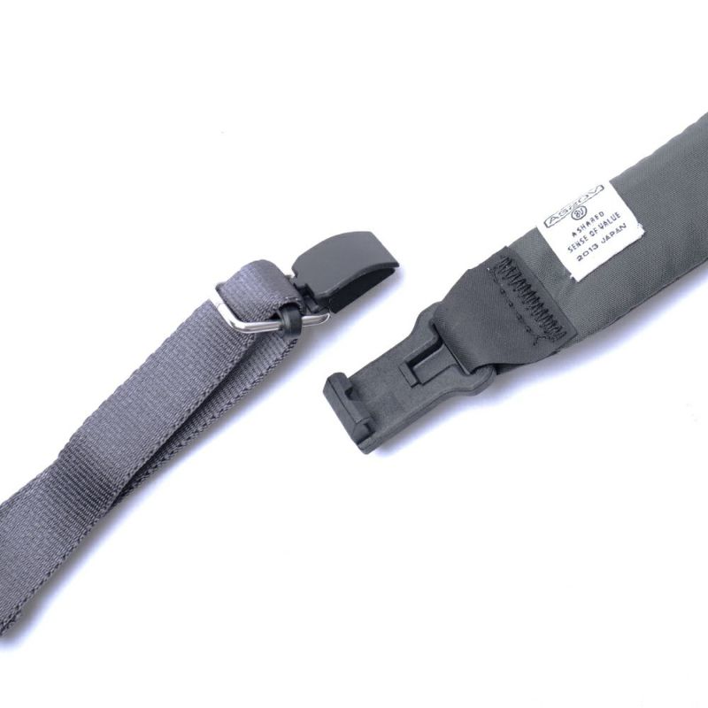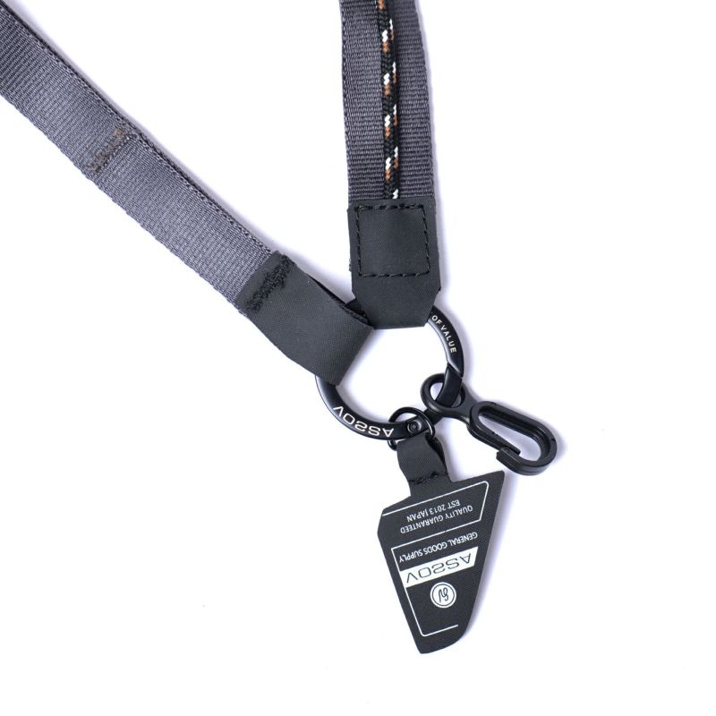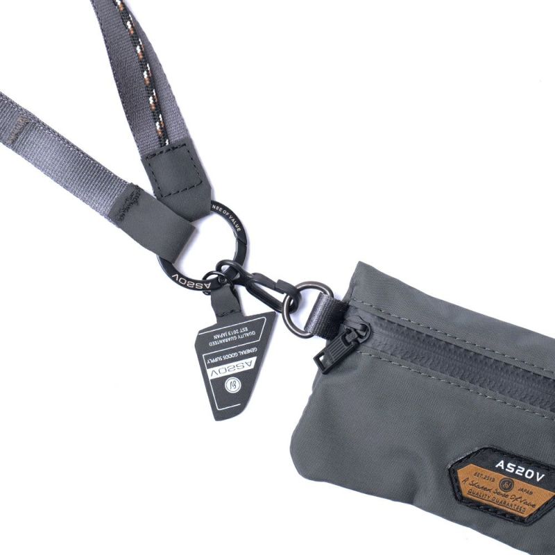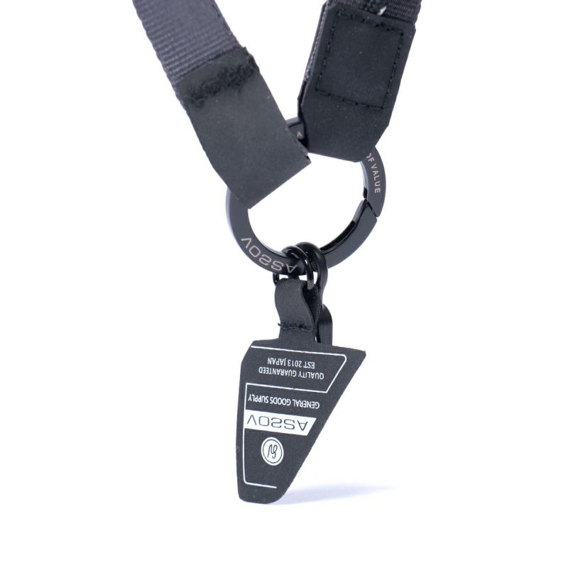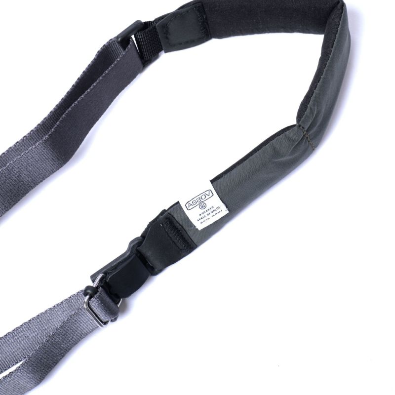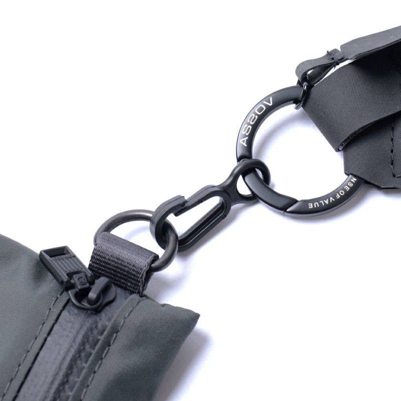 スマホストラップとしてスマホをぶら下げながら、鍵や小銭入れ、ゴールゼロなどをぶら下げてマルチユースなショルダースタイルに。パンツのポケットいっぱいに詰め込むのはもう古い! 肩に当たる部分には肉厚なウレタンをボンディングしているので着用時のストレスを軽減してくれます。こういうところにAS2OVらしさを感じます。