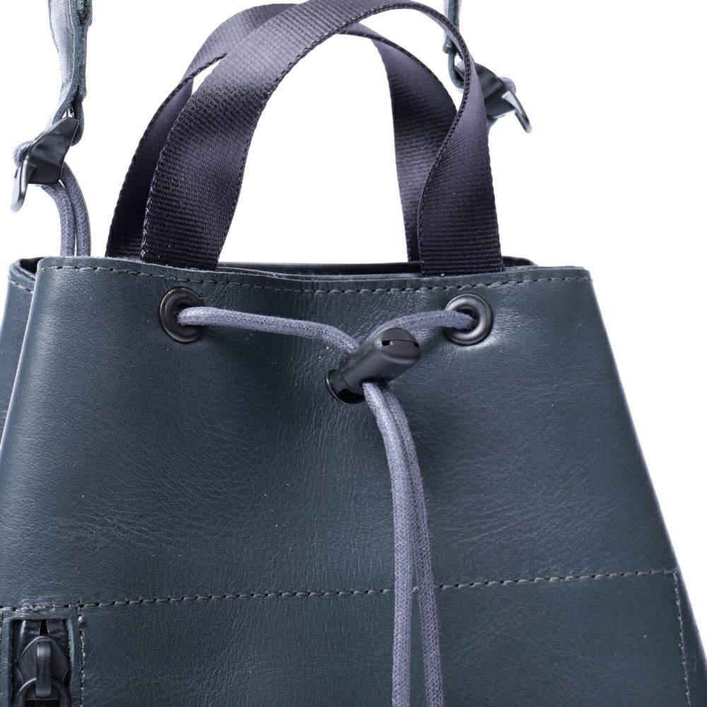 ファッション性と防水性を兼ね備えた巾着バッグ。貴重品や最低限の小物を持って出る時、ファッションのアクセントにもなる巾着デザインで、ついつい持ち出してしまうアイテムです。防水性に優れたレザーなので、タウンユースだけではなくBBQやキャンプなども汚れを気にせず使えます。UNBY STORE別注の限定素材でカラーはグレーとブラックの2色展開。