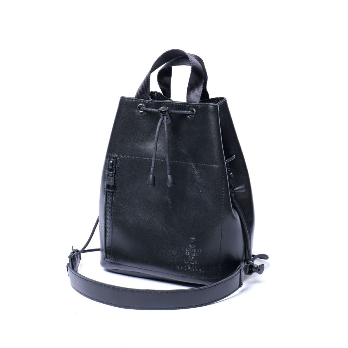 国家規格(JIS K 6550防水検査)日本工業規格検査を受けた高水準の防水レザーを使用した、レザー巾着バッグ。