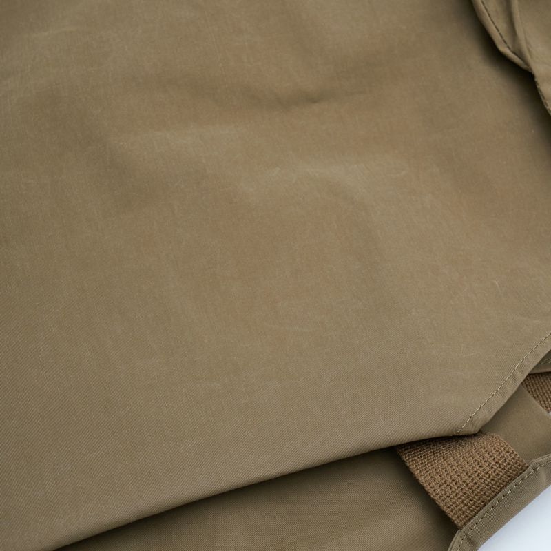 高密度に織られた生地を更に高塩縮加工を施す事により、超高密度できめ細やかでコシがあり、ボリューム感のある独特の風合いの生地となっており、更に使用する事により独特のヴィンテージ感が出てまいります。