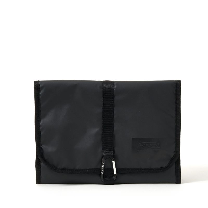 軽量ながら防水性に優れたトラベルポーチ。ミニウォールポケットとして掛けて使えます。