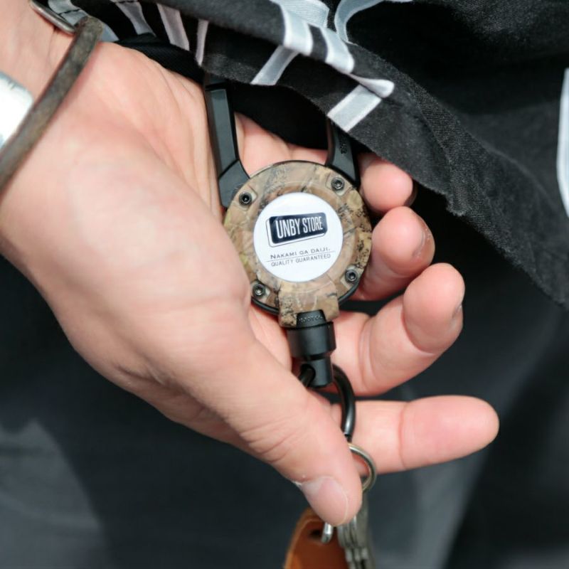 グラビティマグリールのUNBY STORE別注モデル フロントにUNBYロゴを配した限定アイテムです。 CARABINER REEL(カラビナリール) MAGNETを内蔵したカラビナ付きコードリールキーホルダー。リュックやバッグ・ベルトループに取り付け、iPhoneケースや鍵などをぶら下げ可能。大事なアイテムの落下防止や紛失防止に。 伸縮自在なリール紐は伸長約85cm、マグネット耐荷重は約3.4kg。(300gまでの物を吊り下げてご使用ください) 上下ともカラビナ仕様なので、ワンタッチで取り付け・吊り下げ共に着脱が簡単です。 ※Patent pending:特許申請中 MAGNET HOLDER(マグネット内蔵ホルダー) 下部リール部分にはマグネットを内蔵なので、吊るしたスマホや鍵などをしっかりとホールド。重さでリールが勝手に伸びてしまう等を防ぎます。 360° ROTATABLE(360°回転) マグネット接合部は360°回転式するので、どの角度からも扱いやすい仕様。 DESIGN(デザイン) 登山ザックやなどとも相性の良い、アウトドアテイストをとりいれたタフネスなデザイン。 FOR ANY ACTIVITY(使い方はいろいろ) 釣りや登山はもちろん、キャンプシーンやフェス、海外旅行など様々なアウトドアアクティビティで活躍します。 大切なスマートフォンやデジタルカメラ・鍵(車のキー)・アウトドア用マルチツール・トラベルグッズ・財布・ポーチなど。