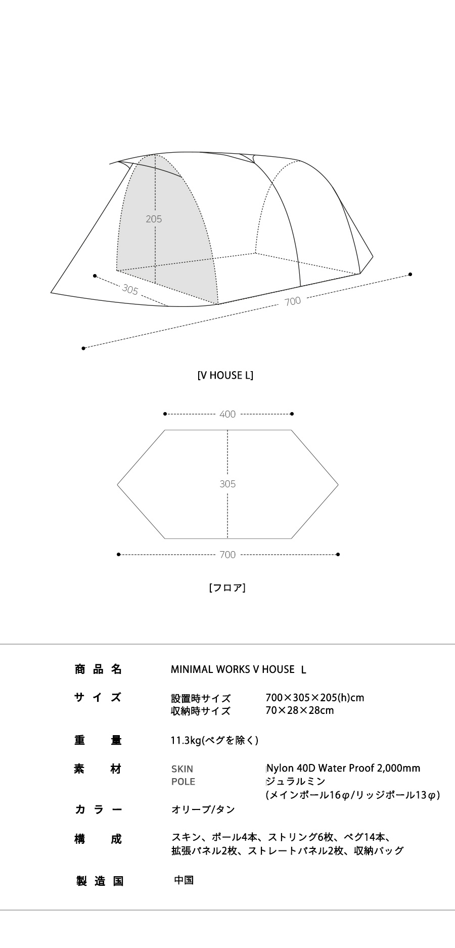 5. MINIMAL WORKS (ミニマルワークス)V HOUSE L OLIVE / シェルター