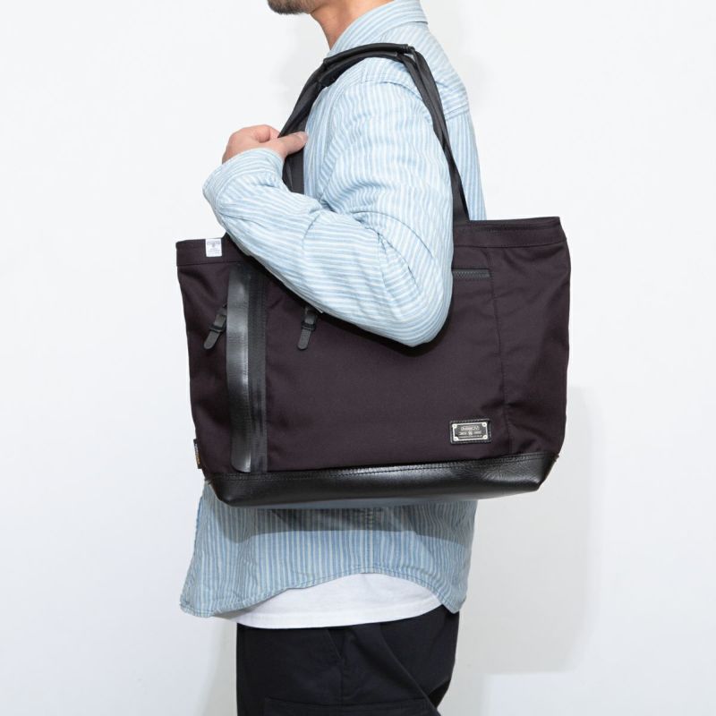 AS2OV独自のバリスティックナイロンを使用したトートバッグ。ビジネスでの使用はもちろん、週末のお出かけにも使いやすいアイテムです。下部にレザーを施し、重厚感のある仕上がりです。