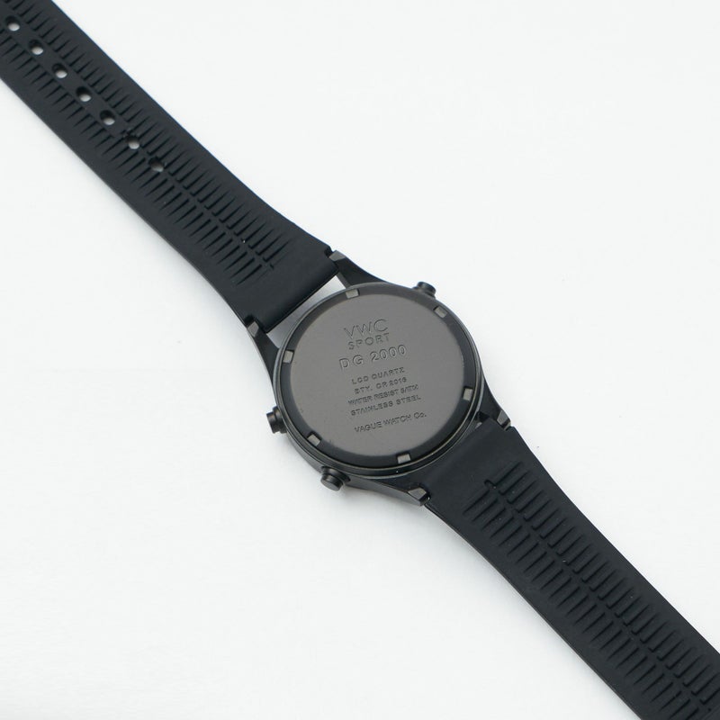 1970年代初頭に世界で初めて発売されたデジタルウォッチ、アナログ時計が主流であった時代に針の代わりに "デジタル数字"で時間を表示する機構は当時の時計の概念を覆す画期的なものでした。 VAGUE WATCH Co. では初めてとなるデジタルウォッチ"DG2000"は 70年代当時の近未来的なデザインを再現・アレンジするにあたり、 出来る限り外径を小さくした34mmというサイズを提案致します。 デジタルウォッチではあまり見られないラウンド型の時計本体に ライト、アラーム、ストップウォッチというシンプルな 3つの機能を搭載したムーヴメントを内蔵、 シリコン素材のオリジナルベルトはベルトループに”VWC SPORT"のロゴが入りモダンなアクセントに付属するPVCポーチは時計の保管だけではなく、身の周りの物を収納して持ち歩ける便利なサイズ。 本体ケースの仕上げ、文字盤ガラス、ベルトのカラーによって全て表情が異なる3種類のモデルからお選びいただけます。