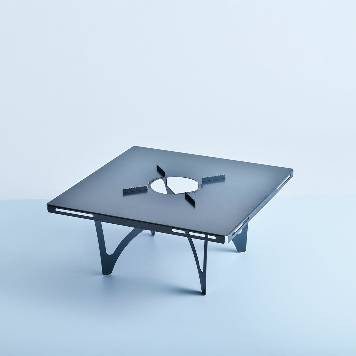 「まずアイアンで焚き火周りのギアを揃えているので、アイアンのギアとの相性がいいです。また、分解すると灰の受けの四角に全て収納できるようになっているのでとてもコンパクトになるのもポイントです。