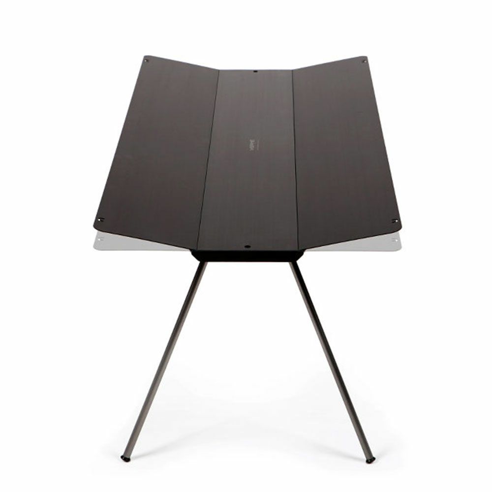 まずはこちらのVST MAESTRO SYSTEM TABLE(以下MAESTRO)。使用時が横106.5×縦50.5×高さ40(cm)の2~3人用テーブルです。カラーはブラックのみで、VERNEらしいオールブラックで統一されています。