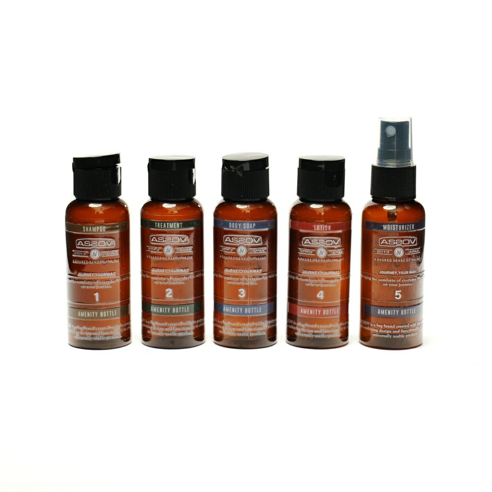 PVC素材のポーチがセットになった、トラベルボトルセット。