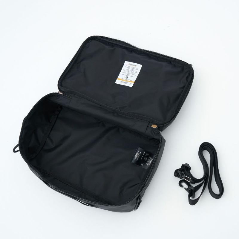 側面のジップで開き、インナーとシャツ程度が収納可能です。