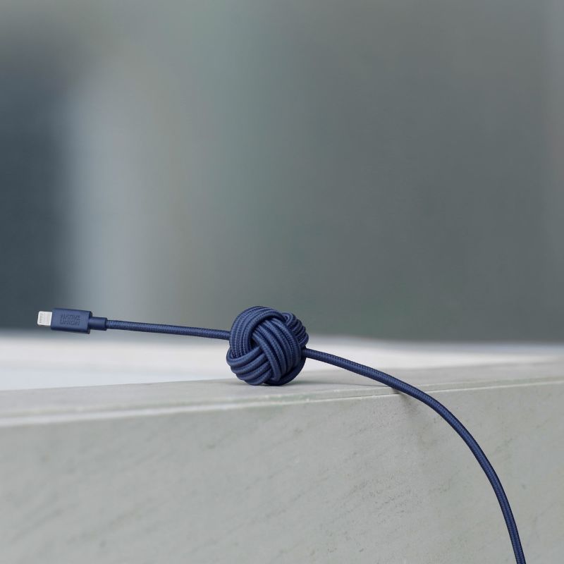 Night Cable は、充電や同期に使用できる長さ 3 メートルの Lightning - USB ケーブルで、ケーブルアンカーが付いた高品質のナイロン製ツイストペアケーブルです。