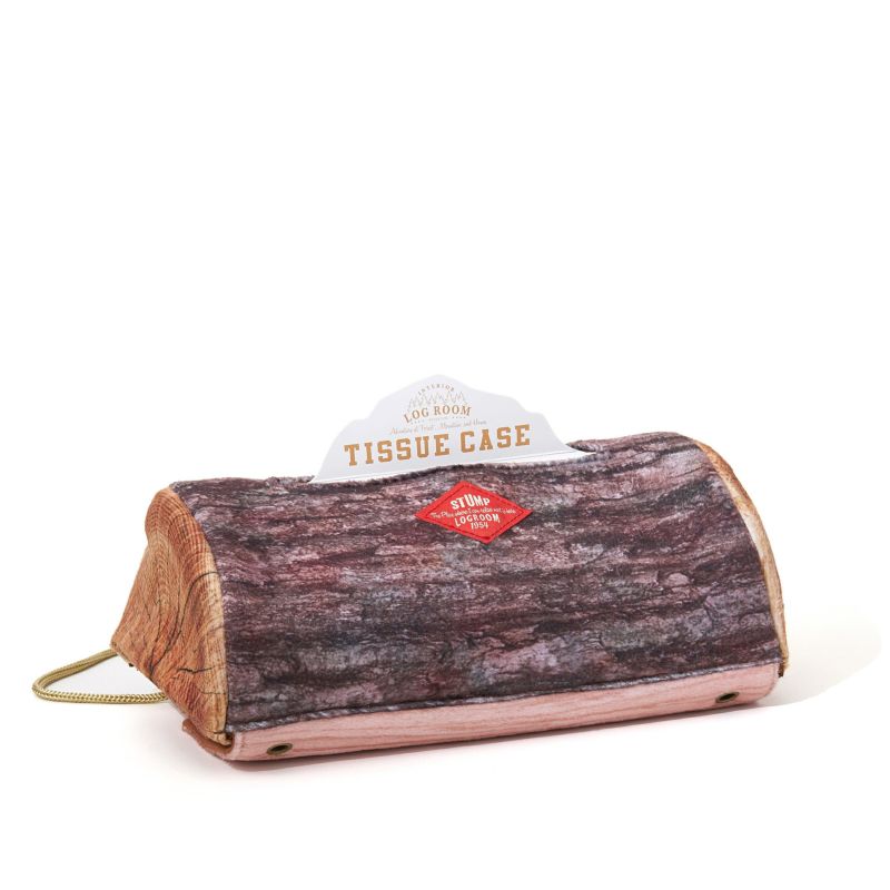 森を感じる丸太モチーフのインテリアシリーズ“LOGROOM”。 丸太を半分に割ったような形のティッシュケースです。 卓上に置くだけでなく壁掛けとしても使えます。