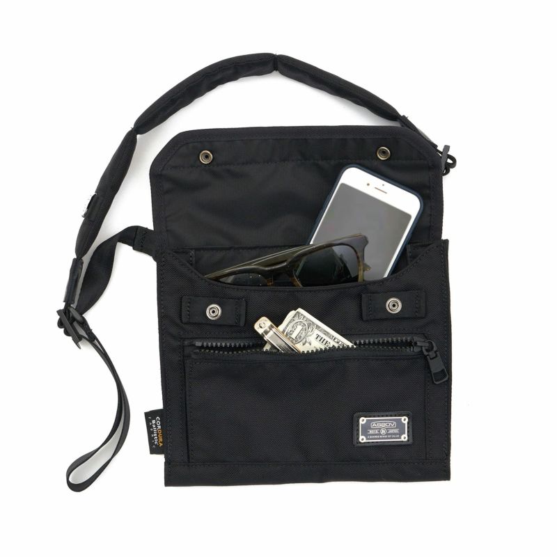 AS2OV独自のバリスティックナイロンを使用したミニショルダーバッグ。バッグ自体が財布になるディテールを持ち、旅行との相性が抜群のアイテムです。